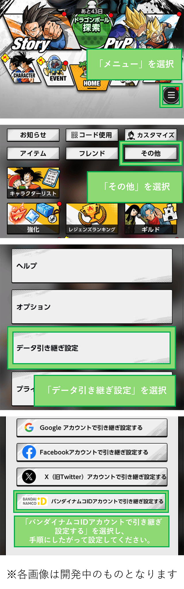 手順1:ゲームアカウントをバンダイナムコIDに連携