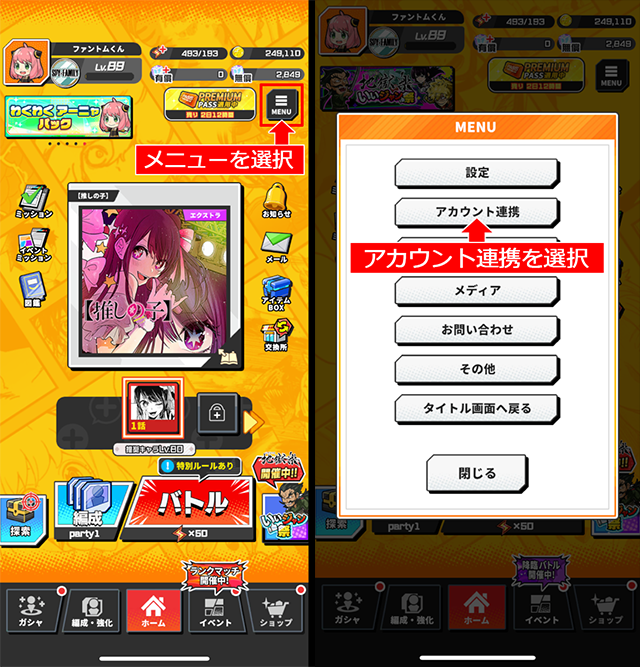 手順1:ゲームアカウントをバンダイナムコIDに連携