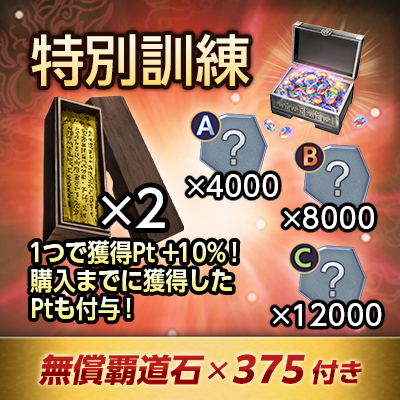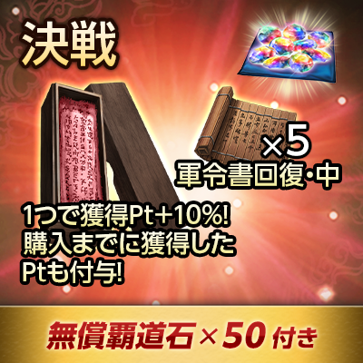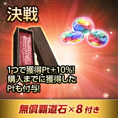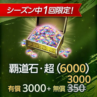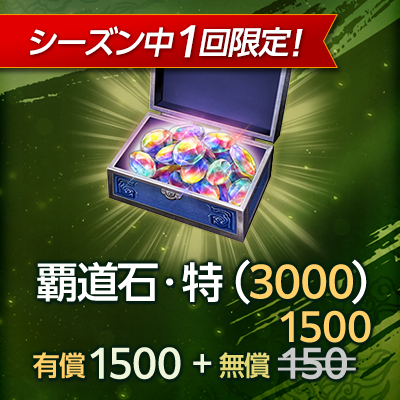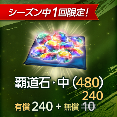 本ページ記載の販売個数は有償覇道石と無償覇道石の合計値となります。内訳詳細は購入確認画面で必ずご確認ください。