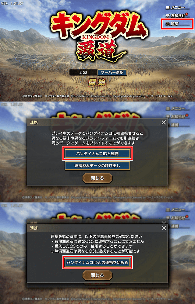 手順1:ゲームアカウントをバンダイナムコIDに連携