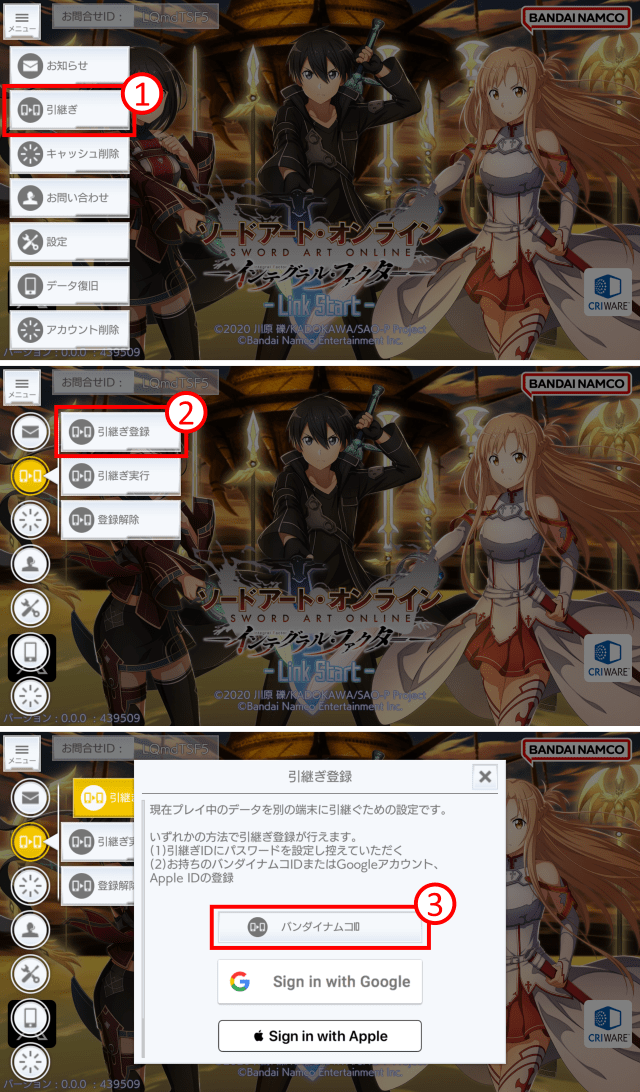 手順1:ゲームアカウントをバンダイナムコIDに連携