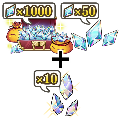 有償魔晶石980個、無償魔晶石50個、おまけで属性解放戦闘キャラ選択券1枚が入手可能。