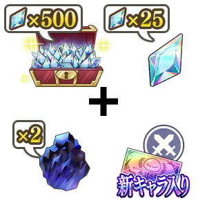 有償魔晶石500個、無償魔晶石25個、おまけで4th Anniversary 超魔王竜祭 Part.4 交換結晶2個、新キャラ入り 4th Anniversary 超魔王竜祭 Part.4 極★5確率30% ★5戦闘確定スカウトチケット1枚が入手可能。
