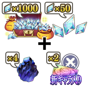 有償魔晶石1000個、無償魔晶石50個、おまけで4th Anniversary 超魔王竜祭 Part.4 交換結晶4個、新キャラ入り 4th Anniversary 超魔王竜祭 Part.4 極★5確率30% ★5戦闘確定スカウトチケット2枚が入手可能。