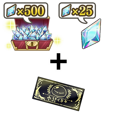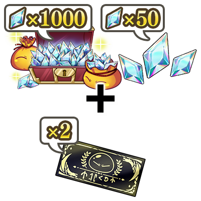 有償魔晶石1000個、無償魔晶石50個、おまけで[紅蓮ノ誓]ヒイロ入り戦闘選択券1枚が入手可能。