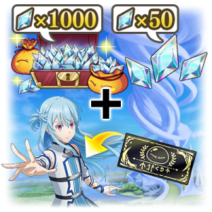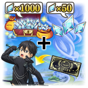 有償魔晶石1000個、無償魔晶石50個、おまけで[黒の剣士]キリト入り戦闘選択券1枚が入手可能。