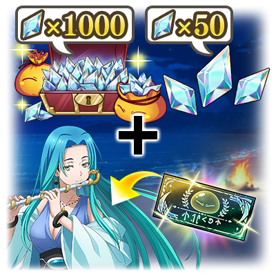 有償魔晶石1000個、無償魔晶石50個、おまけで[慰霊ノ紫鬼]シオン入り加護選択券1枚が入手可能。