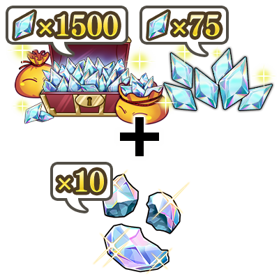 毎月1回限定。有償魔晶石1500個、無償魔晶石75個、おまけで極★5契約石の欠片10個が入手可能。