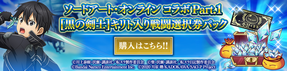 有償魔晶石1000個、無償魔晶石50個、おまけで[蒼翼ノ妖精]リムル=テンペスト入り加護選択券1枚が入手可能。